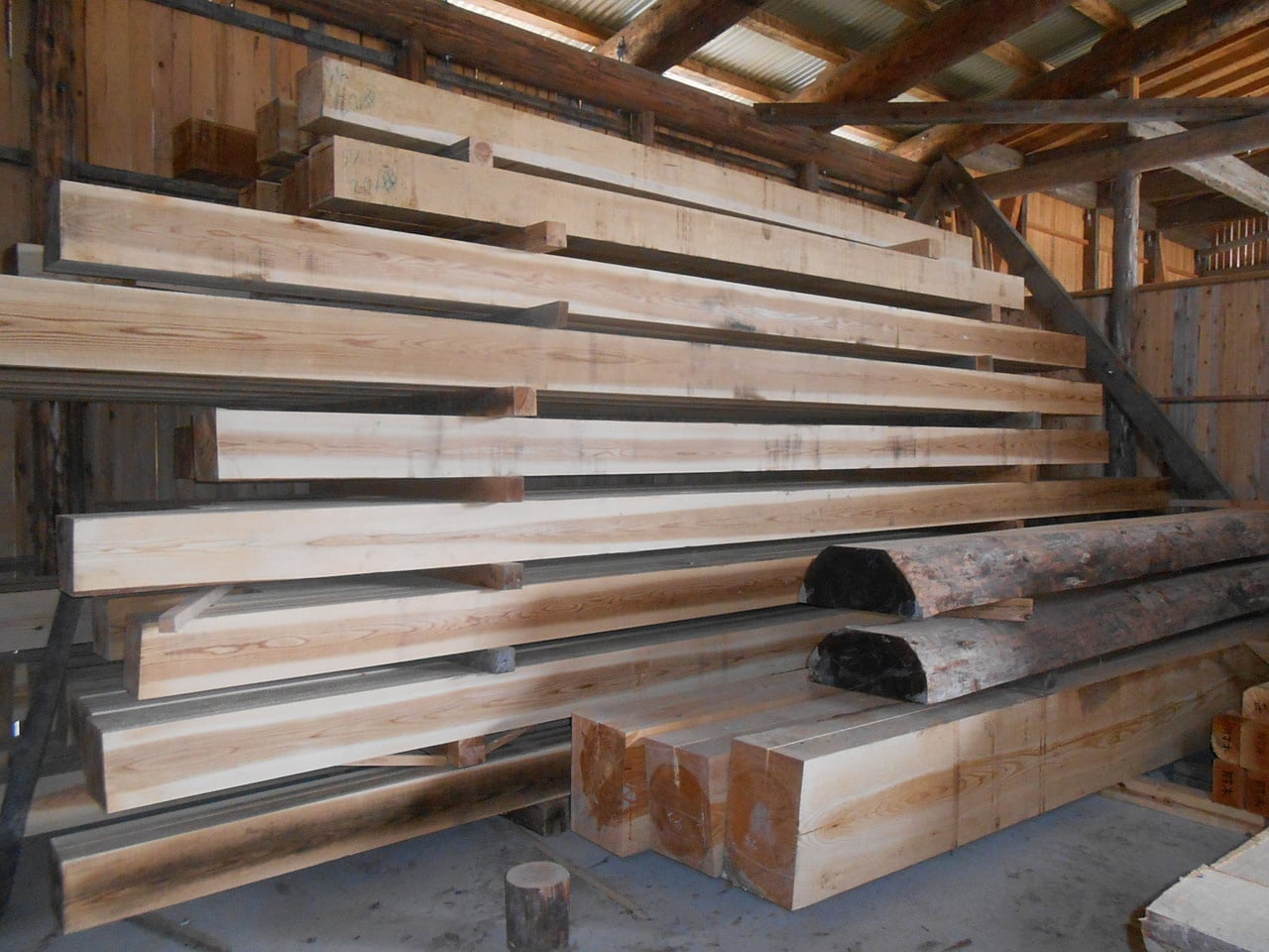 日本に持ち帰り、弊社の乾燥用倉庫にて約1年間自然乾燥させます。