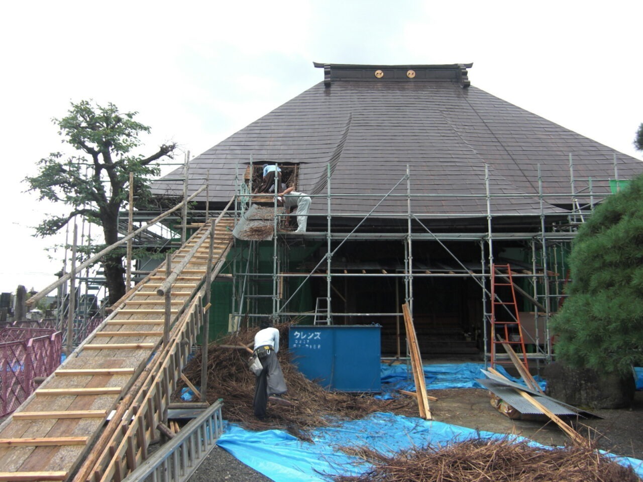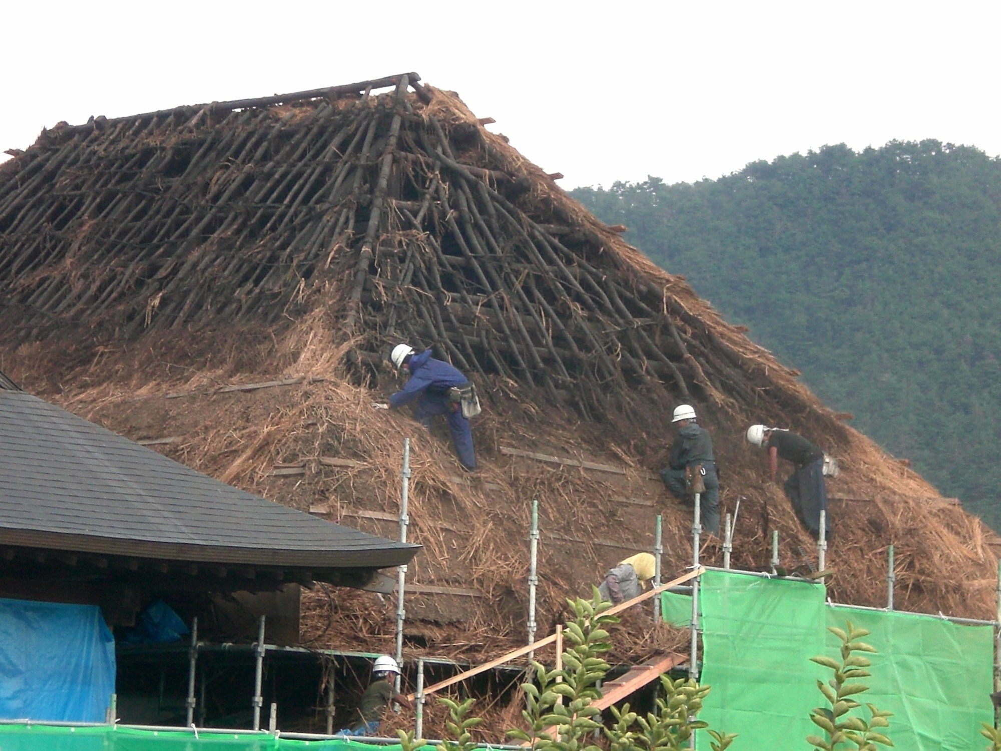 約40年前に茅葺屋根をトタンで包む工事をおこなったそうですが経年劣化が激しく、茅をとって小屋組から新しく造り直すことになりました。