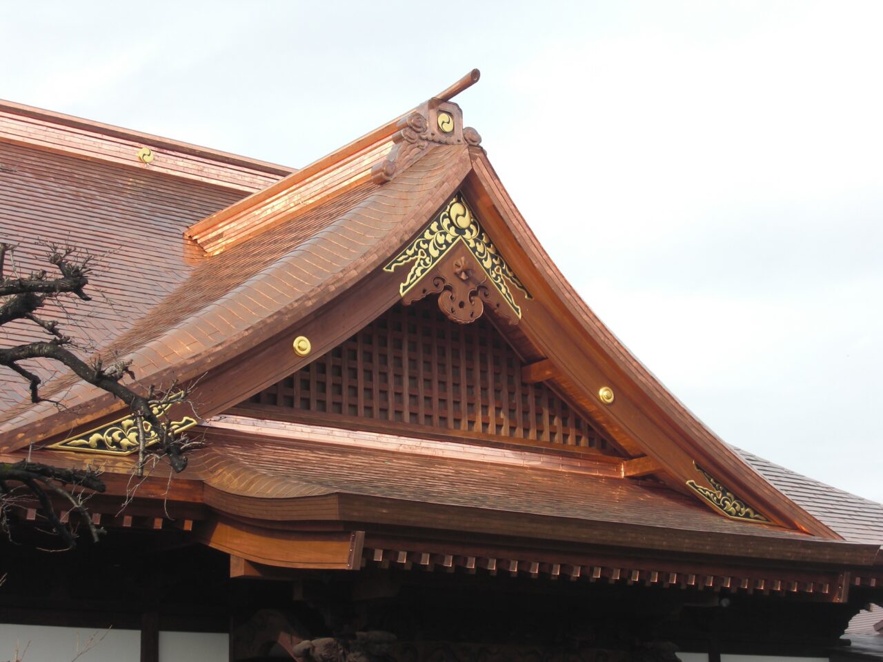 飾り金物も収まり、無事に入母屋造り千鳥破風仕上げの屋根が完成しました。
