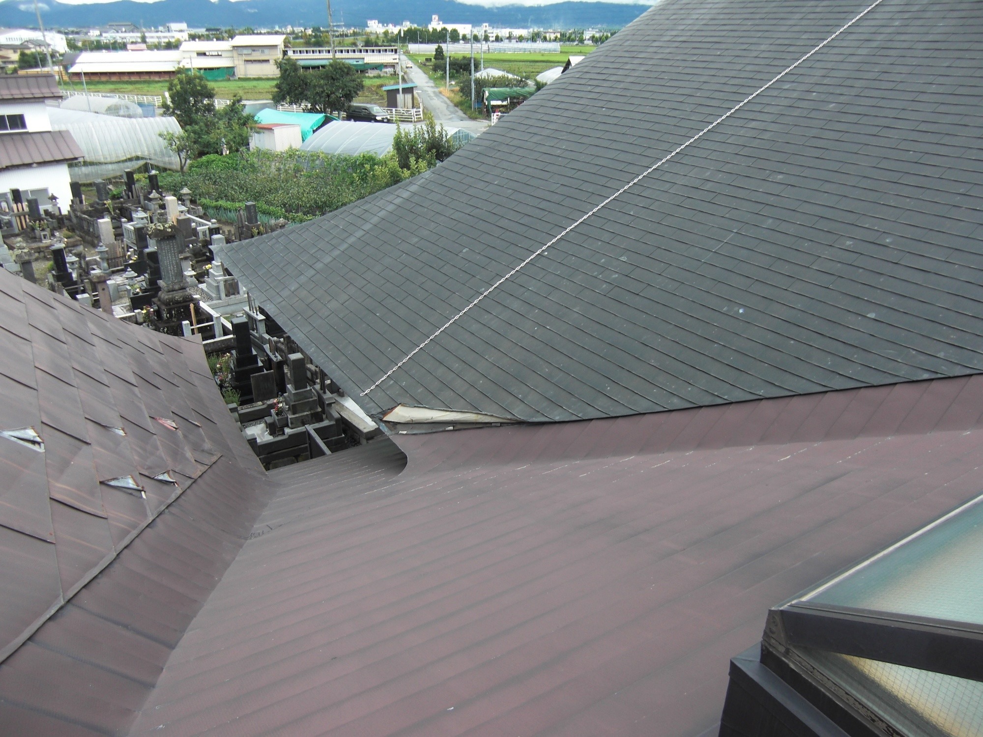 この度の屋根改修工事は、工事中の風雨から内部を守り、安全に・早く・綺麗に工事を進めることができる弊社の特許技術『レインレス工法』を用いました。