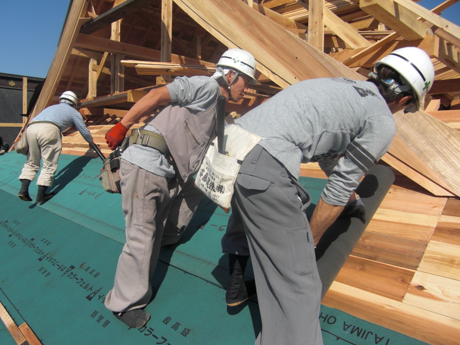 工事中の雨漏りを防ぐため「レインレス工法」で作業を進めます。