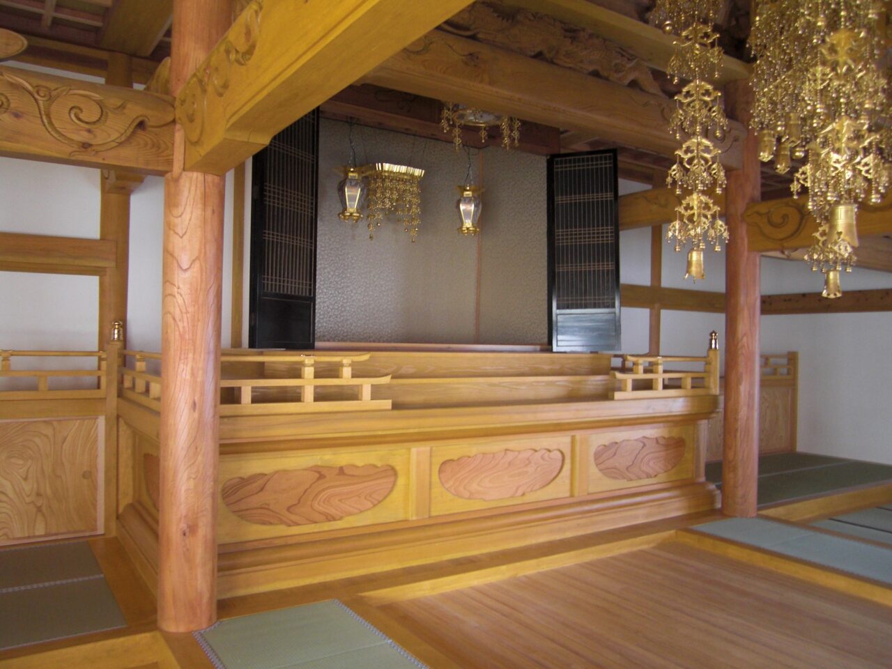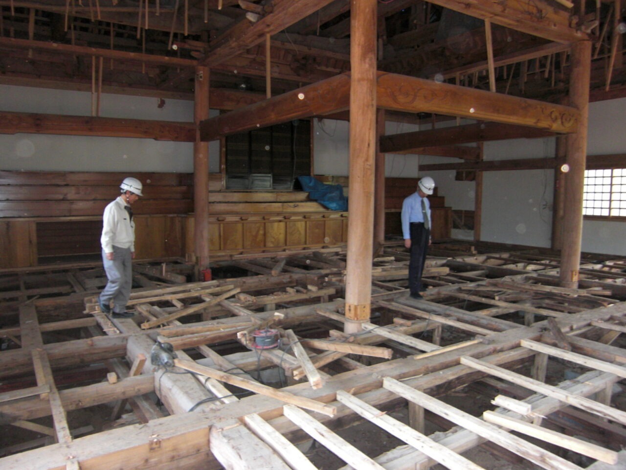 工事をおこなったのは東日本大震災の1年前でした。近い将来宮城県を巨大地震が襲うだろうとの認識をお持ちで、地震に強い本堂にしたいとの希望によりリノベーション工事をおこないました。発災したものの、震度7の直撃を受けた建物は無傷ですみ、弊社の技術力の高さが証明されることとなりました。