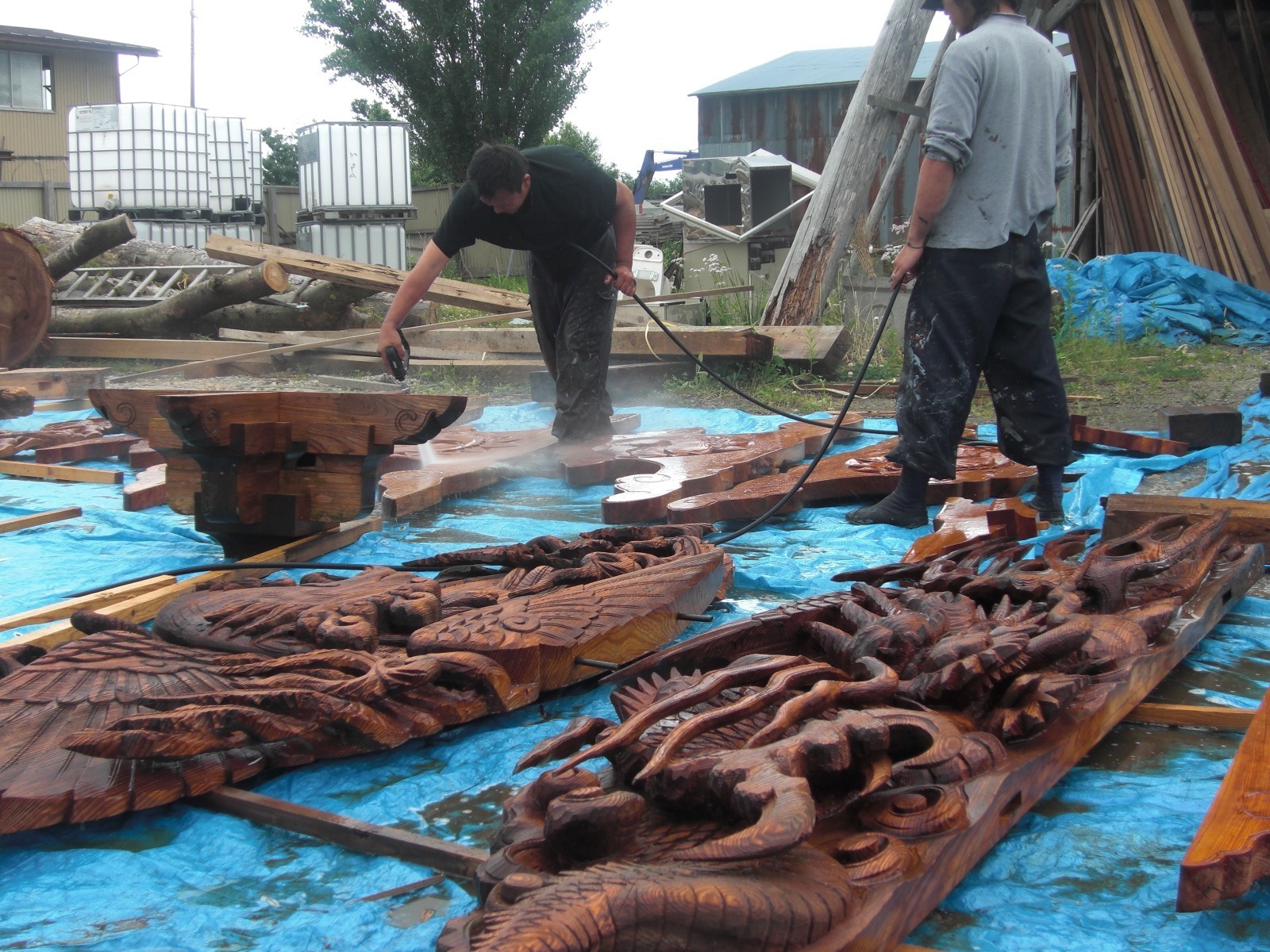 取り外した彫刻等は移設後に再設置する必要があるため、丁寧に洗浄し、保管します。